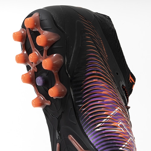 ●伸縮性の高いLYCRAと伸縮性に優れたニットで構成されたシューズのベースレイヤーは、第二の皮膚として機能し、足の動きに密着し、さらに適応性とサポート力のあるフィット感を実現します。複数に独立した3D PODSは、足の動きに沿いつつ全ての動きに対して、FUSION SKIN(フュージョン スキン)が足に沿うつくりになっています。また3D仕様のPODSがボールタッチ時の足のサポートをもたらします。
