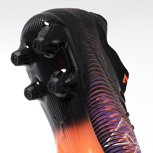 ●ベースにPebaxとポリウレタンを使用する事で軽量化を図り、台形のスタッドベースメントで安定性と強度をもたらすスタッドの地面接地面に凹凸をつけることで滑りを軽減。人工芝、土、天然芝での使用を可能にした軽量HG/AGソール。