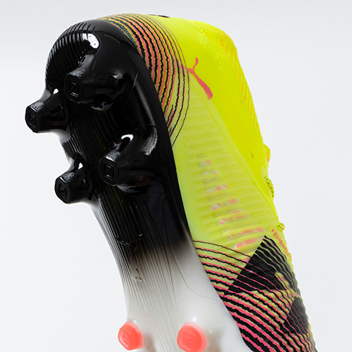 ●伸縮性の高いLYCRAと伸縮性に優れたニットで構成されたシューズのベースレイヤーは、第二の皮膚として機能し、足の動きに密着し、さらに適応性とサポート力のあるフィット感を実現します。複数に独立した3D PODSは、足の動きに沿いつつ全ての動きに対して、FUSION SKIN(フュージョン スキン)が足に沿うつくりになっています。また3D仕様のPODSがボールタッチ時の足のサポートをもたらします。