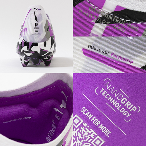 ●ULTRAの為に開発された、プーマ独自のアウトソール。軽量なPebaxをベースにピッチを掴み、そして強力な蹴り出しと加速力を生み出す革新的なスタッドシステムを採用。エネルギーリターンを最大化し、更なる加速を生み出す。学術的な研究から多くのテストを繰り返し開発されたT字型の『FastTrax』スタッドは、加速、ターン、クイックなフェイントに対して、最適な蹴りだしをもたらす。