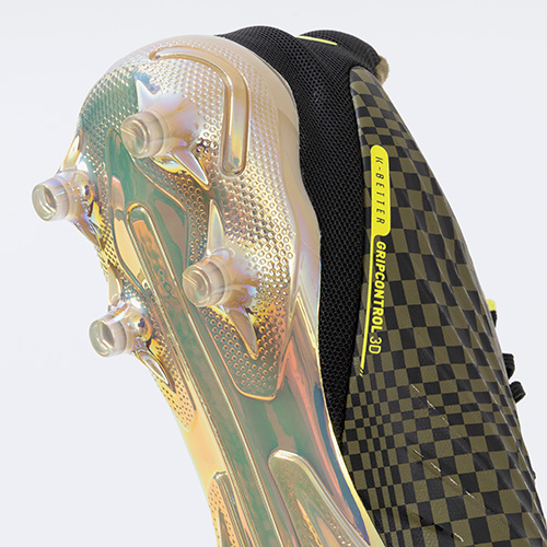 ●更なるボールコントロール性を高める為、インサイド面のアッパーに凹凸の3D加工とボールグリップの為「GRIPCONTROL 3D」のPUプリントを搭載。中足部の甲周りを「EVO KNIT SOCK」構造でフィットさせることで、横の動きへのサポートを強め、前方向への屈曲時足とシューズの密着度をあげ推進力を高める効果を発揮。90分間いかなる場面でも高度のコントロールと精密なパスで好機を演出する。