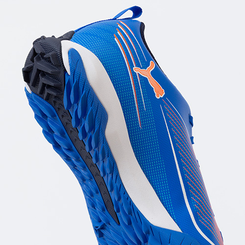 ●方向転換時に足を安定させるPWRTAPEサポートフレーム、アウトソールは軽量でありながら耐久性が高く、固い土、人工芝のグラウンドで最適なトラクションを発揮するよう設計されています。
