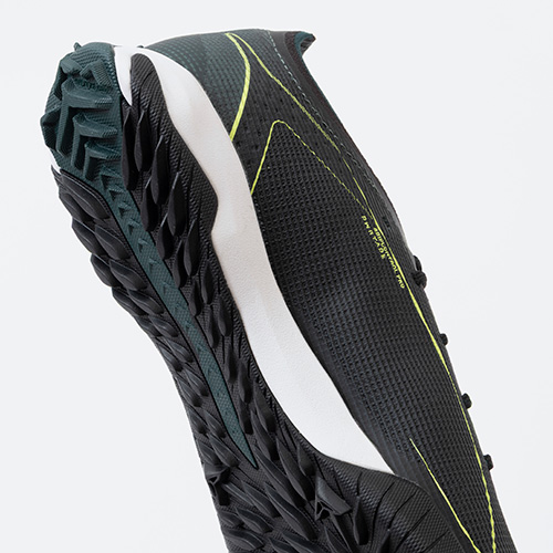 ●軽量で快適な圧縮成形EVAミッドソールと、マルチスタッズラバーアウトソールは急加速にも耐えられる滑り止め効果を発揮します。