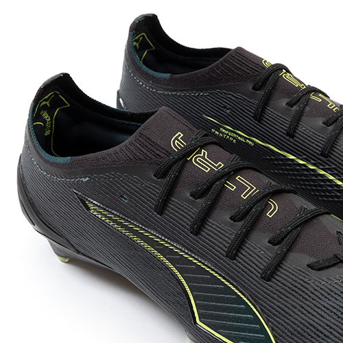 ●ULTRAの為に開発された、プーマ独自のアウトソール。軽量なPebaxをベースにピッチを掴み、そして強力な蹴り出しと加速力を生み出す革新的なスタッドシステムを採用。エネルギーリターンを最大化し、更なる加速を生み出す。学術的な研究から多くのテストを繰り返し開発されたT字型の『FastTrax』スタッドは、加速、ターン、クイックなフェイントに対して、最適な蹴りだしをもたらす。