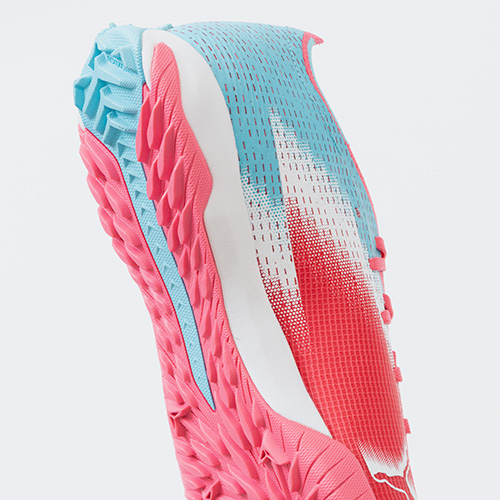 ●薄型のラバーアウトソールとEVAミッドソールは、硬い土や人工芝にも対応。