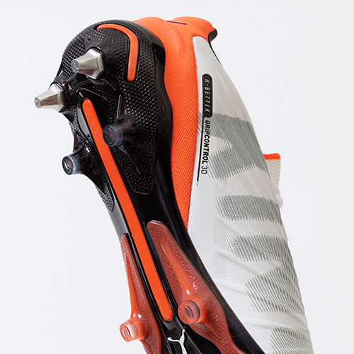 ●更なるボールコントロール性を高める為、インサイド面のアッパーに凹凸の3D加工とボールグリップの為「GRIPCONTROL 3D」のPUプリントを搭載。中足部の甲周りを「EVO KNIT SOCK」構造でフィットさせることで、横の動きへのサポートを強め、前方向への屈曲時足とシューズの密着度をあげ推進力を高める効果を発揮。90分間いかなる場面でも高度のコントロールと精密なパスで好機を演出する。