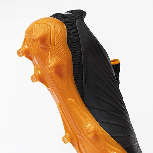 ●更なるボールコントロール性を高める為、インサイド面のアッパーに凹凸の3D加工とボールグリップの為「GRIPCONTROL 3D」のPUプリントを搭載。中足部の甲周りを「EVO KNIT SOCK」構造でフィットさせることで、横の動きへのサポートを強め、前方向への屈曲時足とシューズの密着度をあげ推進力を高める効果を発揮。90分間いかなる場面でも高度のコントロールと精密なパスで好機を演出する。
