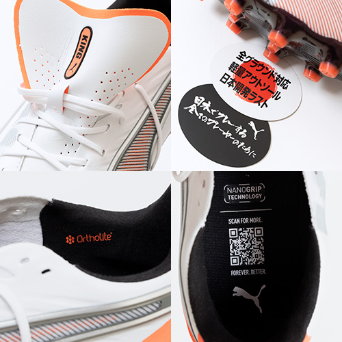 - 2025年7月17日(木)発売。2025年秋冬の新色コレクション「UNTAMED(アンテイムド) PACK」が登場。更なるボールコントロールと快適性を追求したPUMA「KING(キング)」のアルティメットモデルHG(ハードグラウンド)/AG(アーティフィシャルグラス)対応スパイク。