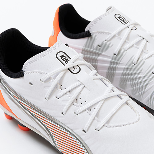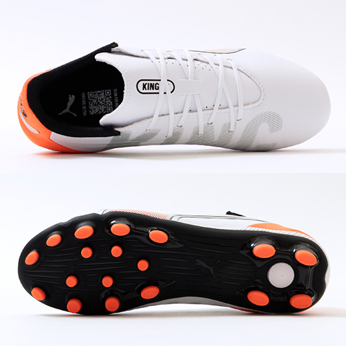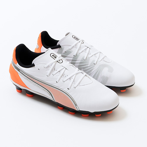 - 2025年7月17日(木)発売。2025年秋冬の新色コレクション「UNTAMED(アンテイムド) PACK」が登場。更なるボールコントロールと快適性を追求したPUMA「KING(キング)」のマッチモデルHG(ハードグラウンド)/AG(アーティフィシャルグラス)対応ジュニア用スパイク。