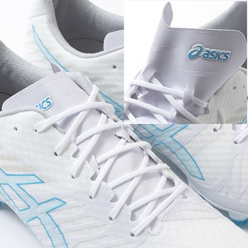 ●より柔らかいラッセルメッシュにフィルムをコーティングし、接着剤を減らすことでさらに柔らかいアッパーへと進化したACROS FIT(アクロス フィット)が、優れたフィット性とホールド性、柔軟性を同時に実現。補強材の配置を適切な位置に見直し、横ブレを軽減し、鋭い切り替えしを可能にする。