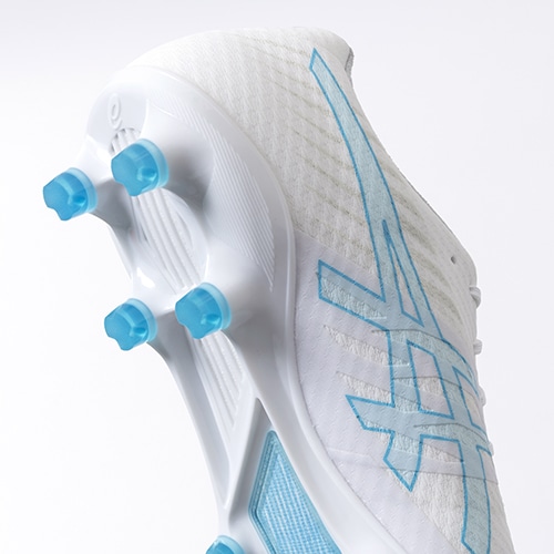 ●X-FLY PROと同じアウトソールを採用。超薄型×高硬度仕様で軽量性とスプリント時に必要な反発性をサポート。先端にはグリップ性に優れた変形円柱型スタッド+ブレード型サブスタッドでパワーロスを抑制。より足と一体化することで、ピッチに力を伝え、加速をサポートする。