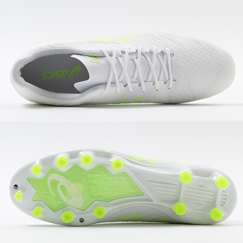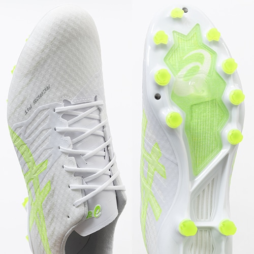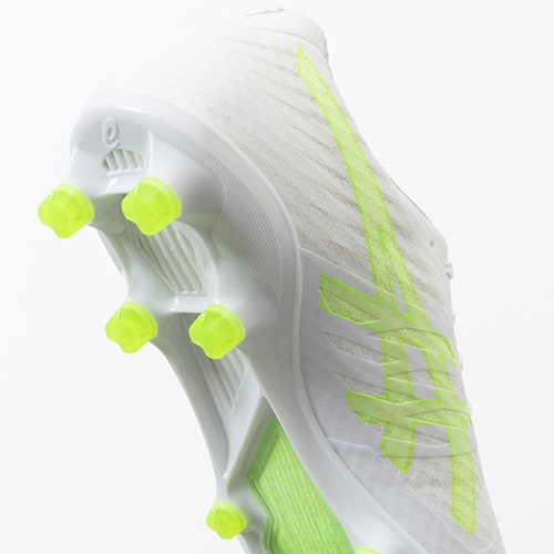 ●X-FLY PROと同じアウトソールを採用。超薄型×高硬度仕様で軽量性とスプリント時に必要な反発性をサポート。先端にはグリップ性に優れた変形円柱型スタッド+ブレード型サブスタッドでパワーロスを抑制。より足と一体化することで、ピッチに力を伝え、加速をサポートする。