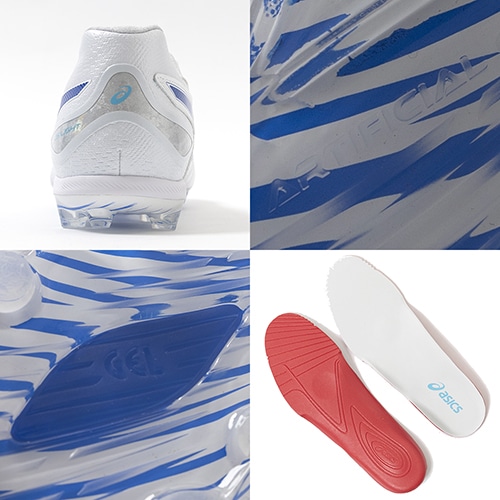 ●一番負荷のかかるかかと部にγGELを搭載し衝撃を緩和。人工芝特有の突き上げ軽減のためにEVAミッドソールを採用。