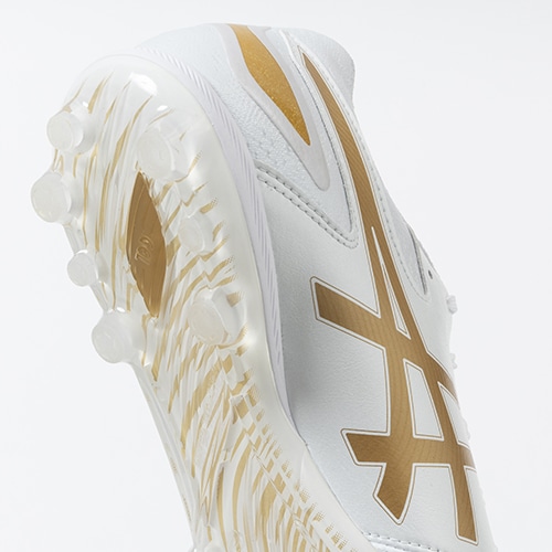 ●人工芝でグリップは発揮しつつ、回旋時にひっかかりにくいようスタッド形状を修正。突き上げを軽減するために多本数のスタッドを採用しつつも、透明な素材にしていることで、スタッドの多さを感じさせにくく、底面のデザインが見え存在感を発揮する人工芝専用ソール。