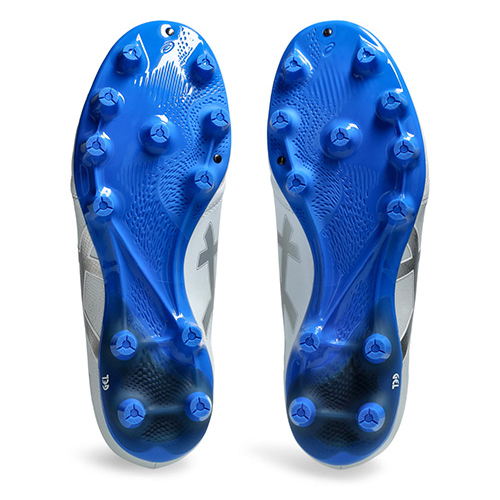 ●毎日の部活でガンガン使える、土で削れにくい耐摩耗ウレタンソール。約2倍の耐久性を誇る耐摩耗ウレタンを採用し、人工芝や天然芝でも使用可能なマルチサーフェイスソール。