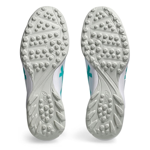 ●アウターソール全体に高低差を付けた、スタッドを採用する事で、グリップ性と軽量性を両立。カカト周りには、楕円状のスタッドを配置し、接地面積を広くする事でカカト部の安定性を向上。更に、前足部の屈曲溝がスムーズな屈曲をサポート。