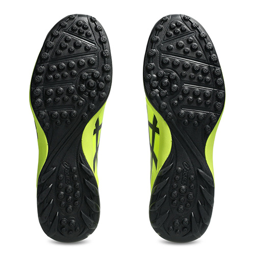 ●アウターソール全体に高低差を付けた、スタッドを採用する事で、グリップ性と軽量性を両立。カカト周りには、楕円状のスタッドを配置し、接地面積を広くする事でカカト部の安定性を向上。更に、前足部の屈曲溝がスムーズな屈曲をサポート。