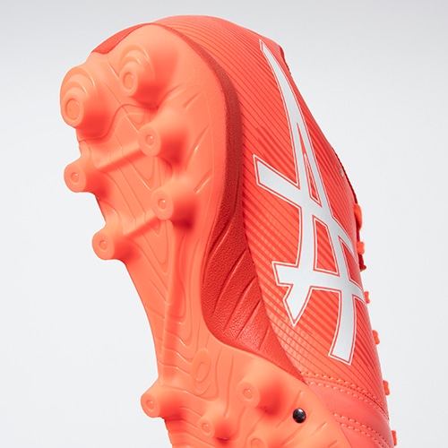 ●アウターソールは前足部のX GUIDANCE によりさまざまな動きでも屈曲しやすい。母趾球直下のマルチスタッドが母趾球を基点としたさまざまな方向への蹴り出しをサポート。