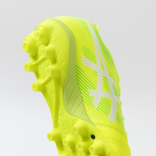●アウターソールは前足部のX GUIDANCE によりさまざまな動きでも屈曲しやすい。母趾球直下のマルチスタッドが母趾球を基点としたさまざまな方向への蹴り出しをサポート。
