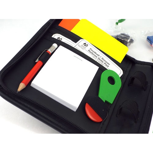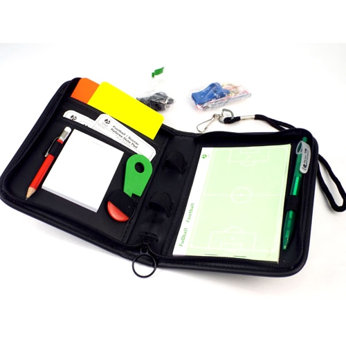 <セット内容>ホイッスル2個(FOX:Classic、Ballila:Micro)、イエロー・レッドカード1式、トスマーク、ボールペン・ペンシル、スタッドゲージ、ホイッスルコード(リストバンド付き)。