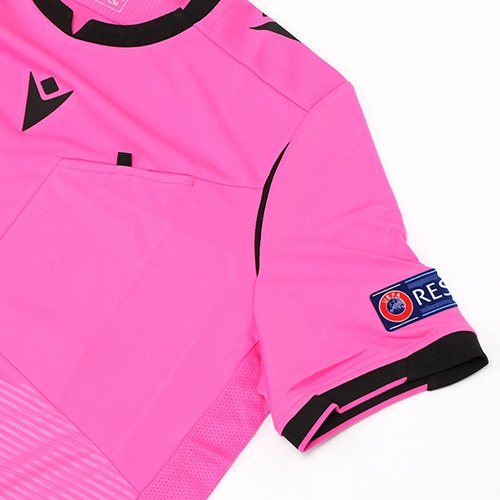 - macron(マクロン)のUEFA EURO2020 オフィシャルレフリー 半袖シャツ。