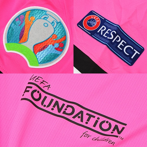 エンボス加工されたヨーロッパ大陸のグラフィックが施され、腰には「FOUNDATION FOR CHIRDREN」、左袖には「RESPECT」ワッペン、右袖には「UEFA EURO 2020」大会ワッペンが付きます。