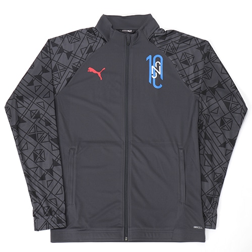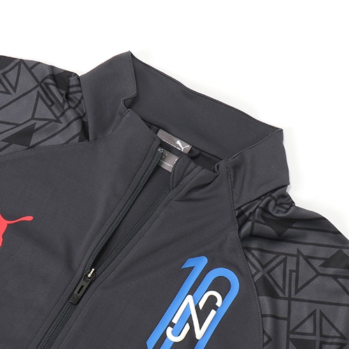 ネイマールとPUMAのコラボレーションNJRロゴと背番号であるNo.10、母国ブラジルからインスピレーションを受けた幾何学模様が特徴的なトレーニングジャケット。