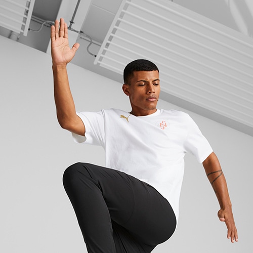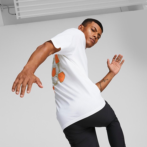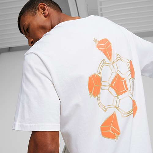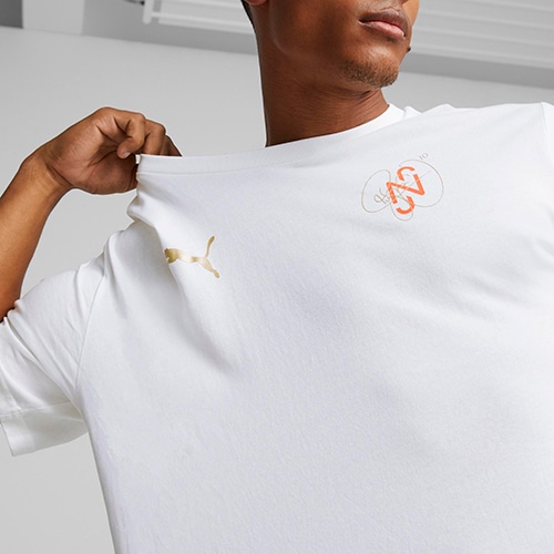 彼のサインのプリント、彼のタトゥーをベースに背面にサッカーをイメージした人目を引くダイアモンドのグラフィックが特徴のこのTシャツを着れば、無敵感を覚えずにはいられないはず。より良い未来への一歩としてリサイクル素材を20%以上使用。プーマ製品に使用されているコットンは、節水や土壌の健康の保護といったサステナブルな農業に重点的に取り組んでいる農場から調達されています。オーバーサイズフィット。