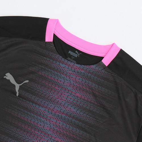 - PUMA「FTBLNXT(フットボール ネクスト)」コレクションのプラクティスシャツ。吸汗速乾素材を使用し、袖にはフットウェアと連動したスピード感のあるグラフィックを使用。背中にはレーザーカットベンチレーション。