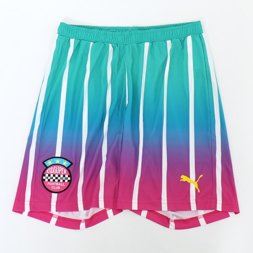 - PUMA×KIDSUPER STUDIOのスペシャルコラボレーション。サッカーの愛情や情熱といった感情を、アート世界の独自性や革新性のエネルギーを組み合わせて表現された限定コレクションのショーツ。