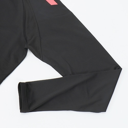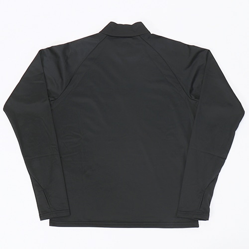 ストレッチ性のある吸汗速乾素材を使用した 1/4 ジップトップ。肩のアクセントカラーが特徴的。