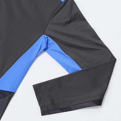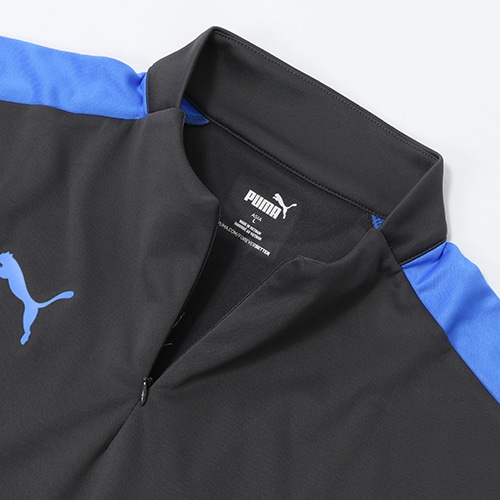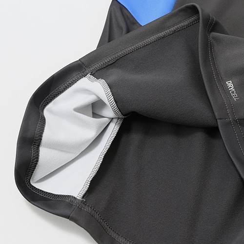 ストレッチ性のある吸汗速乾素材を使用した1/4ジップトップ。通気性を確保するためのメッシュが特徴的。
