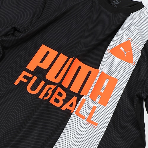 - オンピッチとオフピッチ両方をターゲットにしたPUMA「FUSSBALL(フ-スバル)」コレクション。クレストイメージのシーズナルグラフィックとビビッドカラーのPUMA FUSSBALのロゴが特徴的な半袖シャツ。