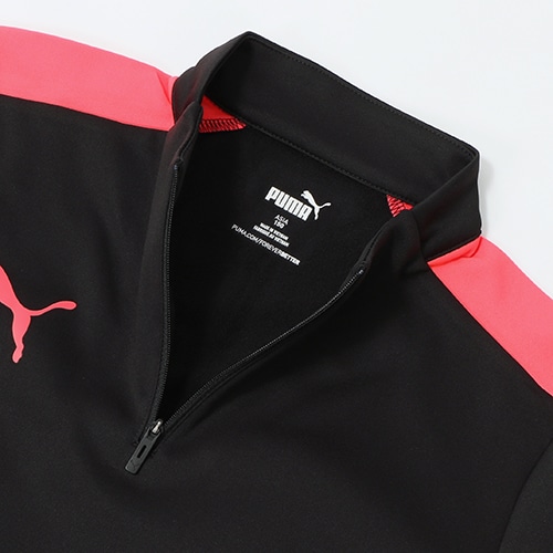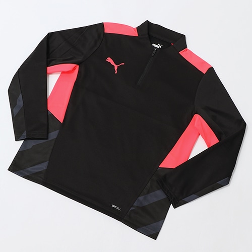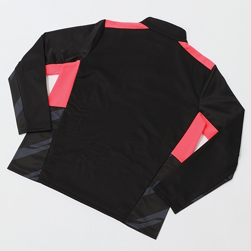 ストレッチ性のある吸汗速乾素材を使用した1/4ジップトップ。通気性を確保するためのメッシュが特徴的。