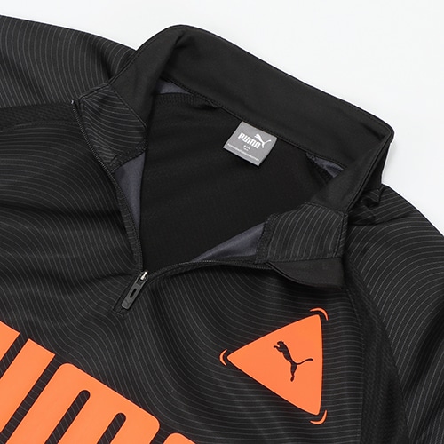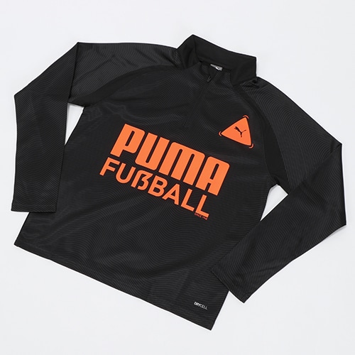 - オンピッチとオフピッチ両方をターゲットにしたPUMA「FUSSBALL(フ-スバル)」コレクション。クレストイメージのシーズナルグラフィックとビビッドカラーのPUMA FUSSBALのロゴが特徴的な1/4ジップのジュニア用トレーニングトップ。