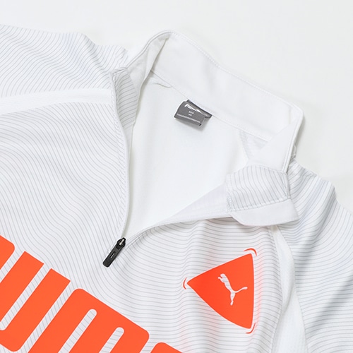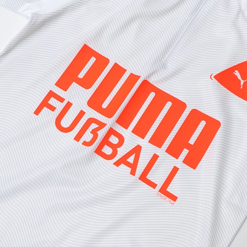 - オンピッチとオフピッチ両方をターゲットにしたPUMA「FUSSBALL(フ-スバル)」コレクション。クレストイメージのシーズナルグラフィックとビビッドカラーのPUMA FUSSBALのロゴが特徴的な1/4ジップのジュニア用トレーニングトップ。