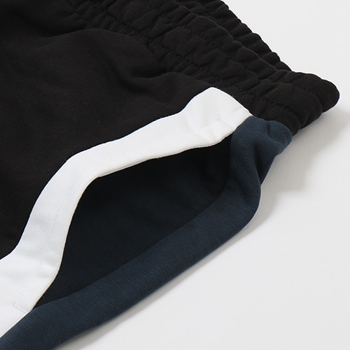 右脚にキングオリジナルロゴ、左脚にプーマFOTロゴを施し、ノスタルジックさを加えています。生地はフレンチテリーを使用。タオルのようなパイル生地が快適な着心地を実現します。レギュラーフィット。サイドポケット付き。