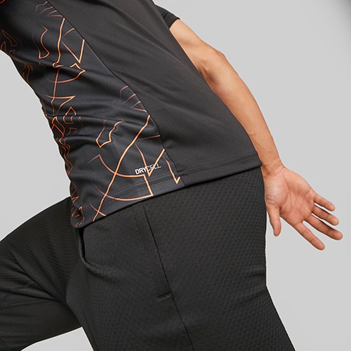 dryCELLを搭載し吸水速乾性が高いため、運動中も快適な着心地が持続します。メッシュパネル付きのスリーブやフロントのグラフィックプリントなど、シンプルなデザインにアクセントを加えました。トレーニングやアクティブシーンに最適な一着です。