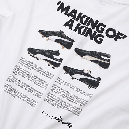 『PUMA』×『Art of Football(アートオブフットボール)』の限定コレクション。モダンクラシックがコンセプトの「PUMA KING(プーマキング) 」の「Making of a」を記録した半袖Tシャツ。