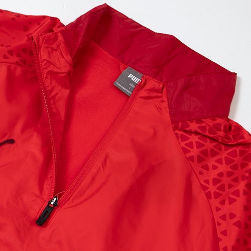 windCELLテクノロジーを搭載しているので、冷たい風から体を守り、運動中でも衣服内を快適に保ちます。1/4ジップアップクロージャー仕様なので、着脱が簡単にできるのも嬉しいポイント。軽量で柔らかな着心地なので、スポーツシーンに一枚は持っておきたいアイテムです。