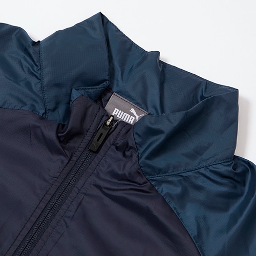 軽量なウーブン素材と裏トリコット素材を使用し、風を防ぎつつプレーの暖かさと快適性をもたらす。windCELLテクノロジーを搭載しているので、冷たい風から体を守り、運動中でも衣服内を快適に保ちます。