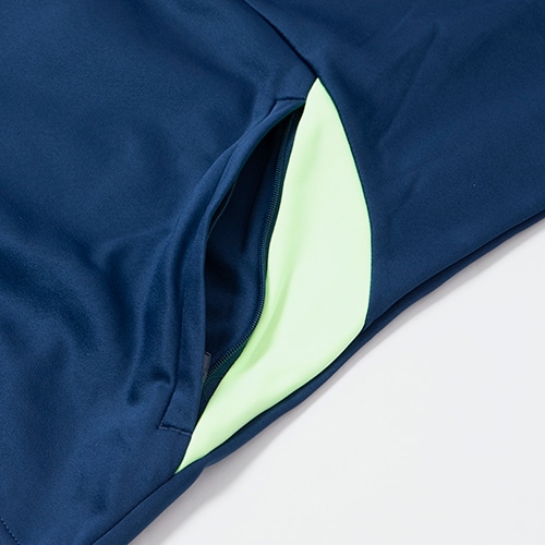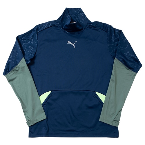 サッカーのプレー中に高いパフォーマンスを発揮するため、フリース構造と保温機能のwarmCELLを組み合わせることで、トレーニング中も暖かさをキープします。二の腕のエンボス加工のグラフィックや腕の切り替えしでシンプルなデザインにアクセントをプラスしています。手のひらまで隠れるサムホール仕様や、フロントポケット付きで快適なプレーをサポートします。