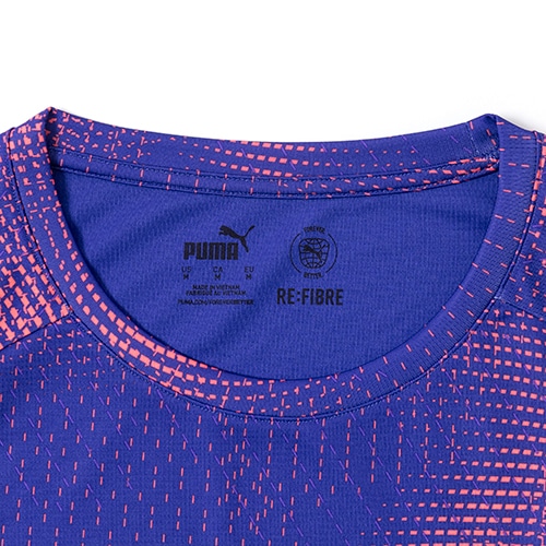 激しいプレー中も衣服内を涼しく快適に保てる戦略的なメッシュパネルとサイドスリット。PUMA の象徴的なサッカースパイクからインスパイアされた新しいグラフィック プリントで個性をアピールします。トレーニングでもオフピッチでも衣服内を快適な状態に保つdryCELLテクノロジーを搭載しています。