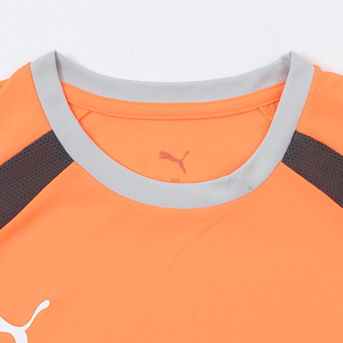 PUMAフォームストリップのグラフィック、サッカースパイクにインスパイアされた鮮やかなポップカラーが特徴です。レギュラーフィットにメッシュスリーブインサート、独自の吸水速乾機能dryCELLテクノロジーを組み合わせています。