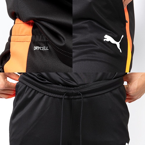 クラシックなリーガスタイルを現代風にアレンジしており、PUMAフォームストリップの要素と鮮やかなポップなカラーで新鮮なひねりを加えています。ジップポケット、メッシュのコントラスト、ジップレッグを採用。また、独自の吸水速乾機能dryCELLテクノロジーを搭載し、快適な着用感も魅力的な一着です。