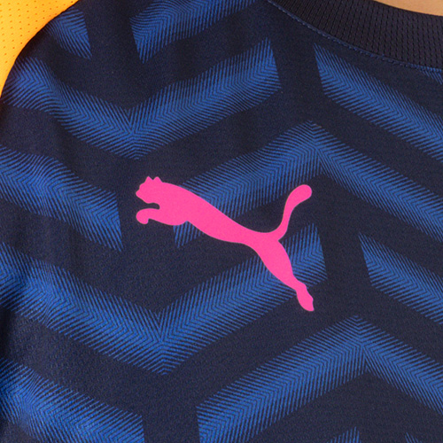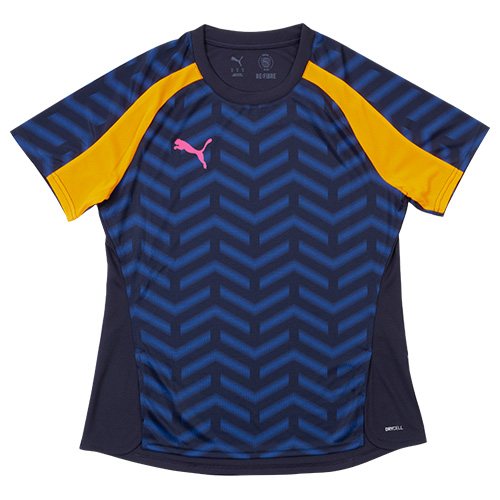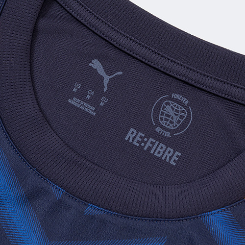 大胆な全面グラフィックと、通気性を高めるトーンオントーンのメッシュインサートが、ピッチ上での存在感を際立たせます。吸水速乾性に優れたdryCELLテクノロジーが、運動中も衣服内をドライで快適に保ち、集中力をサポート。程よいフィット感のレギュラーフィットに、両面ジャカード素材を採用。クルーネック、半袖、レギュラー丈のシンプルなシルエットに、プーマロゴがアクセントを添えています。