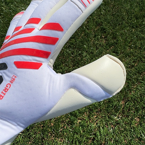 ●ジャパンアルティメットフィット:ストラップレスで快適に装着できる独自設計のGKグローブ。