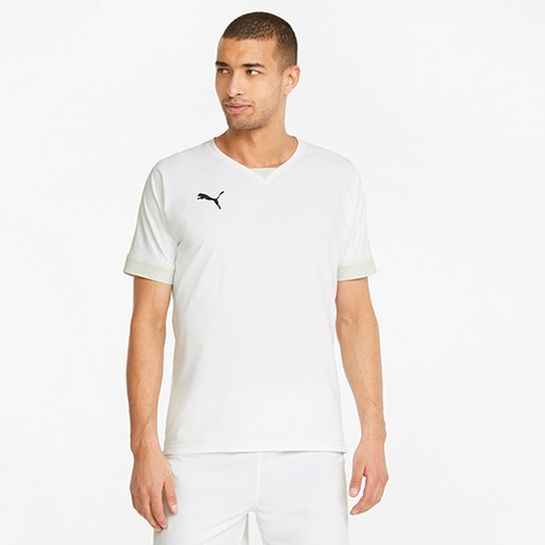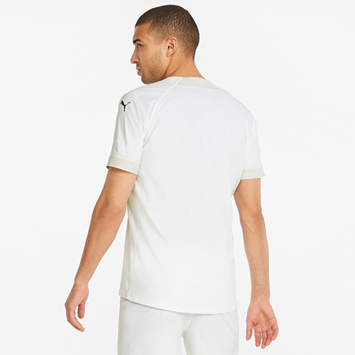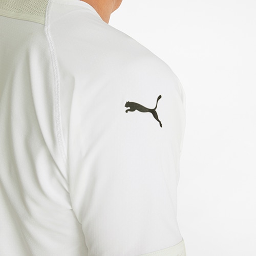 カッティングを減らすことでさらなる軽量性を図り、袖やネックに使用されているパーツも軽量性を意識した物を使用した超軽量ゲームシャツ。従来のニット素材のゲームシャツよりも44%軽量(当社比)。軽さが速さを生み出す。リサイクル素材を使用しています。リサイクル繊維を使用しています。環境への影響を軽減するためのプーマの取り組みのひとつです。