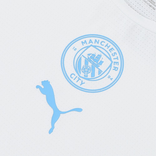 - プレミアリーグ(イングランド)・マンチェスター・シティの2021-2022シーズン、HOMEモデルプレマッチ半袖シャツ。公式戦試合前トレーニング時に選手着用予定のモデル。*インポートサイズ表記。