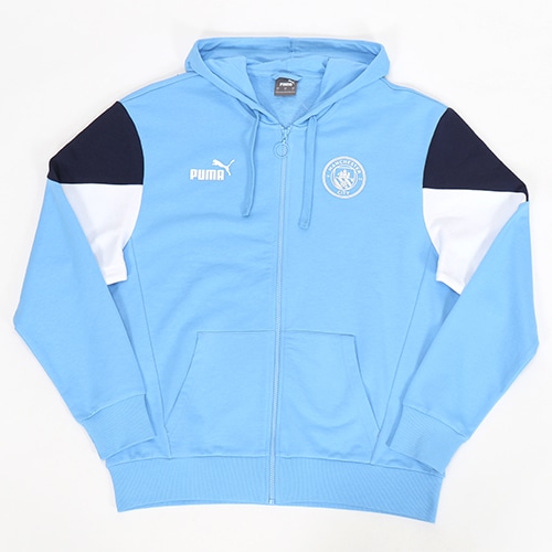 - プレミアリーグ(イングランド)、マンチェスター・シティのレプリカコレクション、FTBLCULTURE フーデッドスウェット。フットボールスタイルとストリートカルチャーの両方の良さを兼ね備えたFTBLCULTUREコレクション。大胆なマンチェスター・シティのブランディング、クールなカラーブロッキング、パンチの効いたパターンが特徴。調節可能なドローコードで快適さをカスタマイズできるフードとサイドポケット付き。袖口と裾の伸縮性のあるリブを採用。